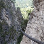 Keď Vlado povedal tetuške v pokladni že chceme ísť na Adrenalin-Klettersteig, nasledovalo hneď pár otázok či naozaj, že je to sehr schwer. Ale Vlado sa nedal odradiť a ja som to nevedel posúdiť. Tak sme začali na zohriatie ferratkou obtiažnosti C dlhou 210m a na jej konci začínala naša „Adrenalin“ obtiažnosti E s dĺžkou 580m.